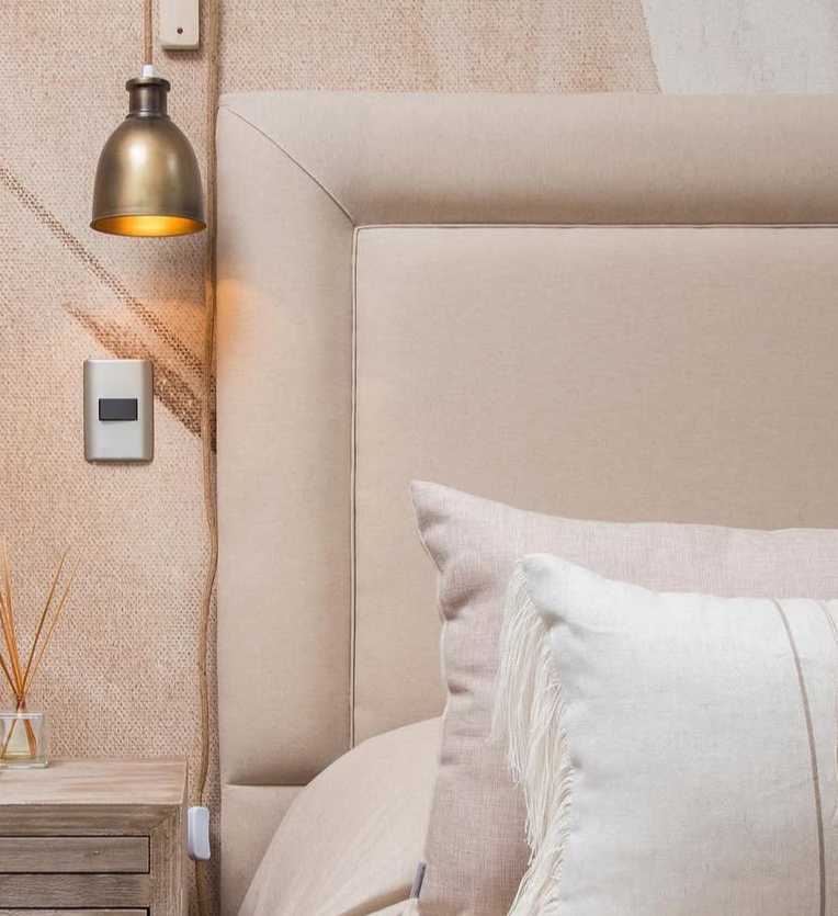 Respaldo liso con funda removible, práctico y versátil. Aporta equilibrio y serenidad a cualquier espacio.