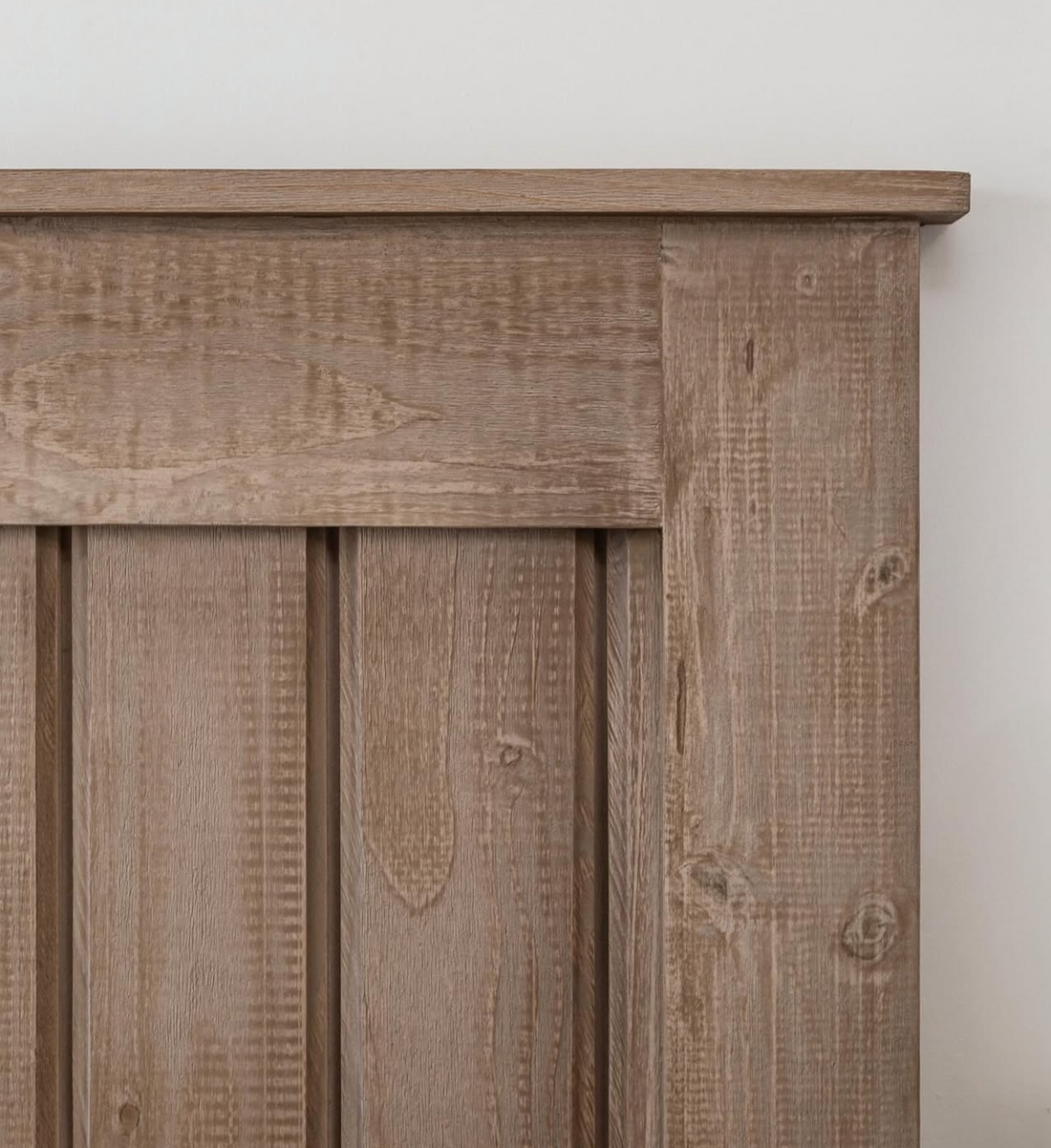 Respaldo Sophie es un clásico en Rustic Chic donde destaca su borde de madera rusticada con un interior de tela a elección.