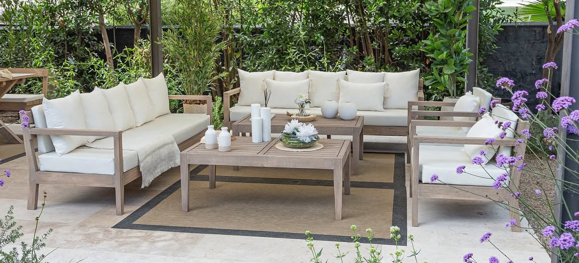 Terrazas a medida en tonos neutros y cálidos, con materiales resistentes y terminaciones pensadas para exterior.