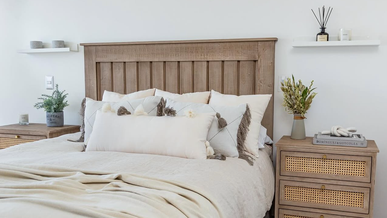 Respaldo de madera natural, con tratamientos artesanales que resaltan su textura y carácter único.