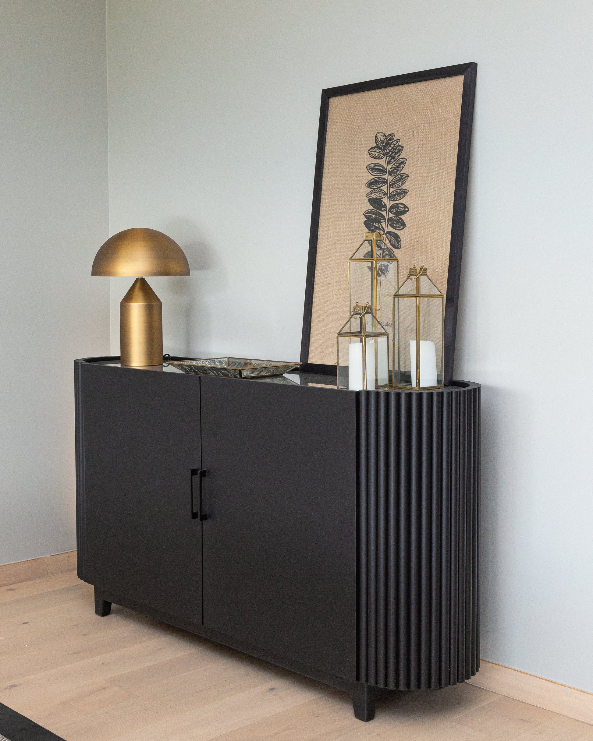 Este buffet de Rustic Chic, en color negro liso, destaca por su diseño moderno y sofisticado.