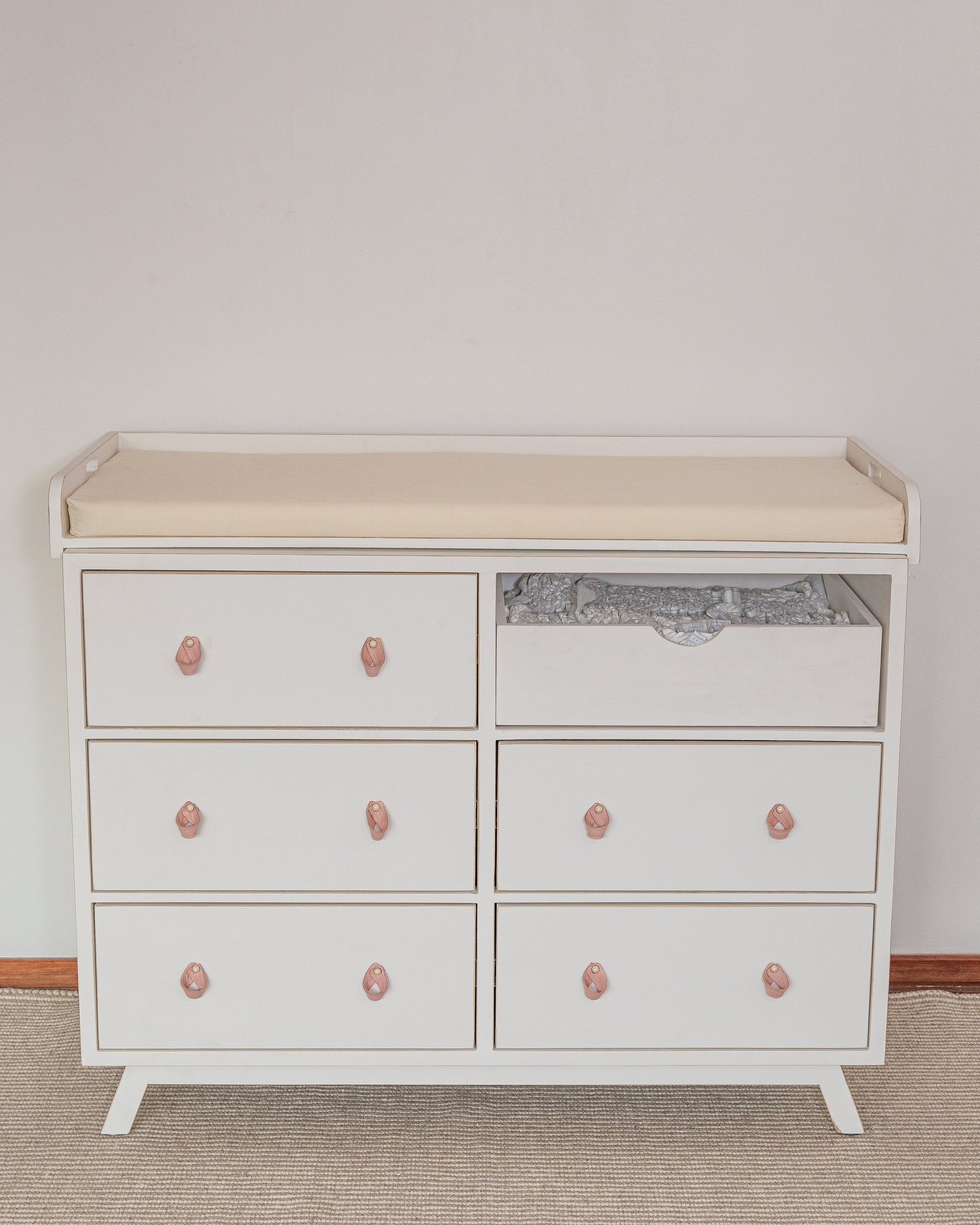 En la superficie superior incorpora un espacio especial para mudar, lo que la convierte en una opción práctica y funcional para habitaciones infantiles.