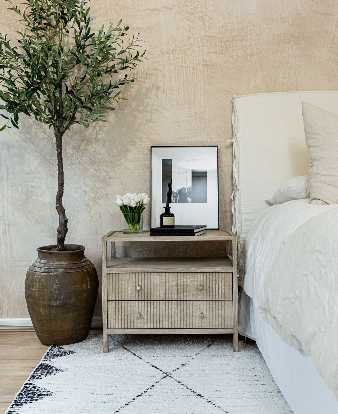 Velador en color moca rusticado hecho a medida por Rustic Chic, fabricado en madera y diseñado para combinar practicidad y estilo en el dormitorio.
